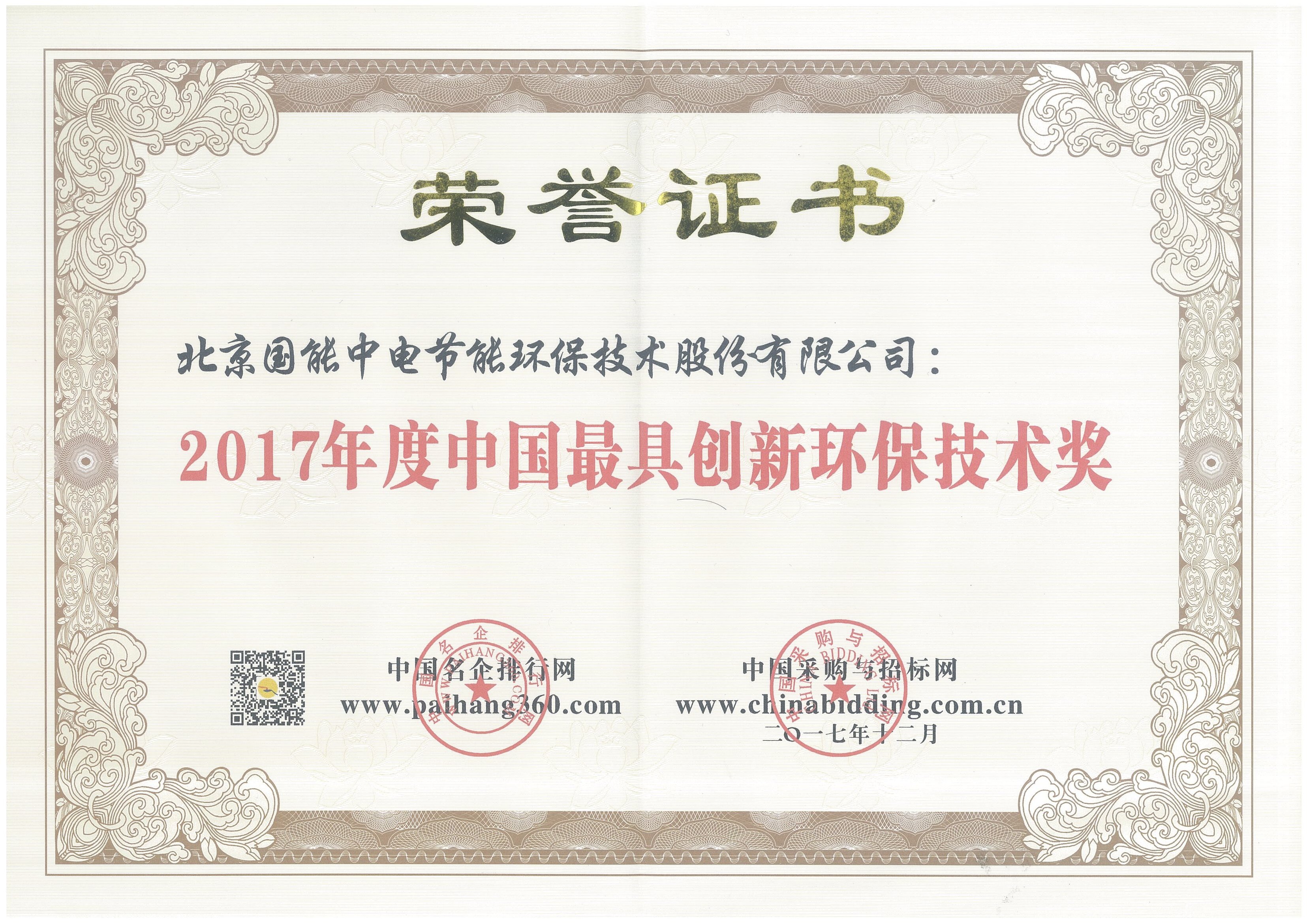 2017年度中國最具創新環保技術獎